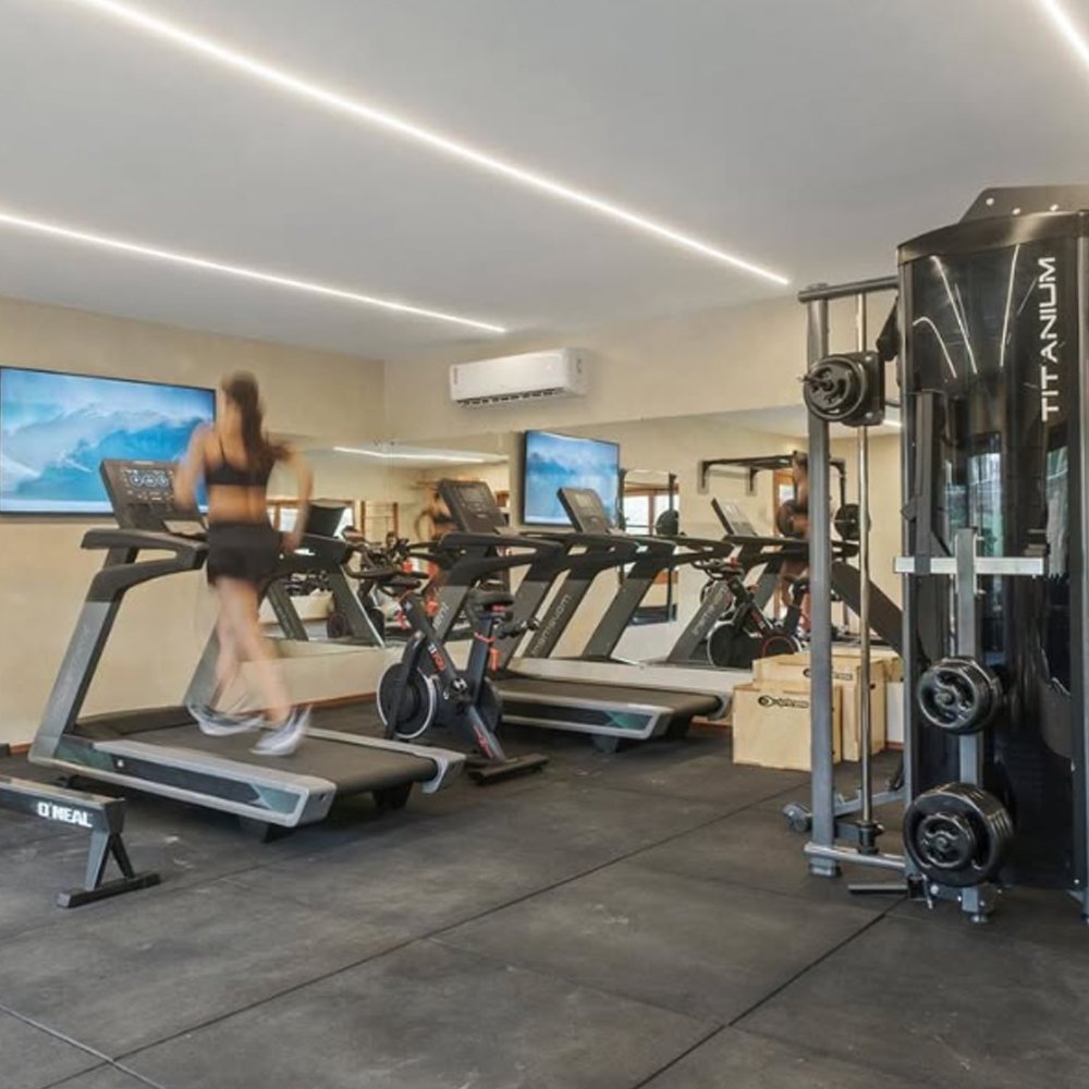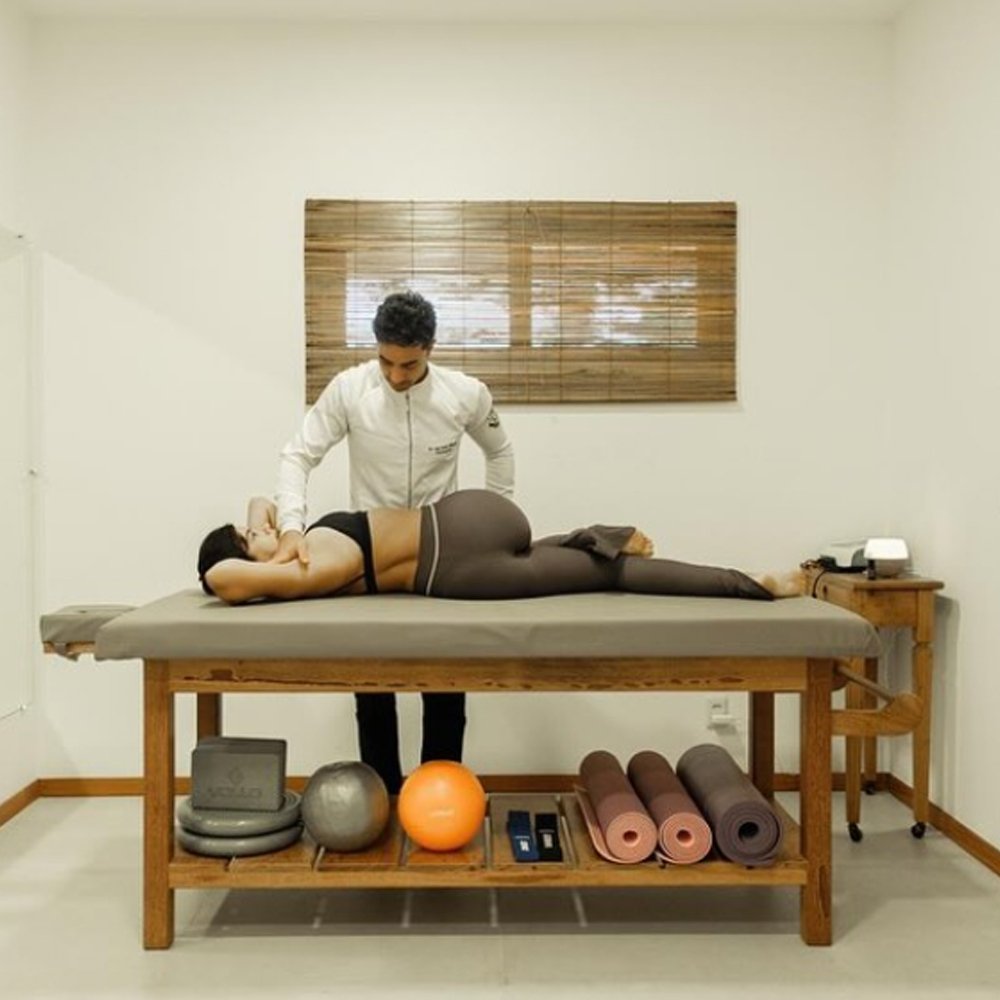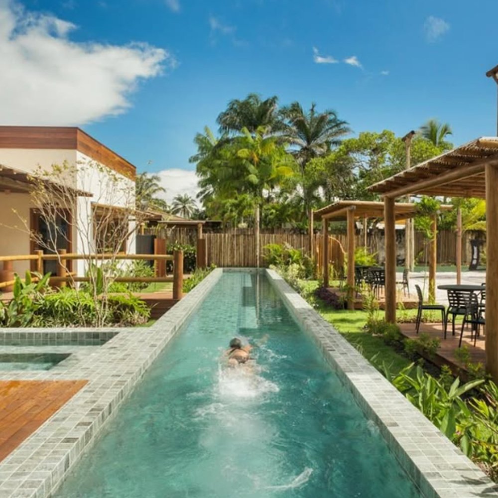 Quadras de beach tennis, piscina com raia de 25 metros, academia e fisioterapia.