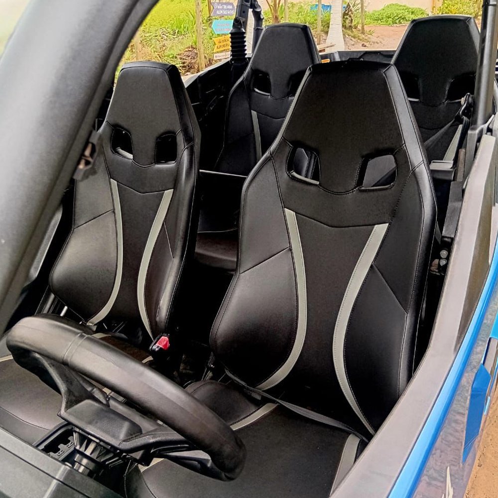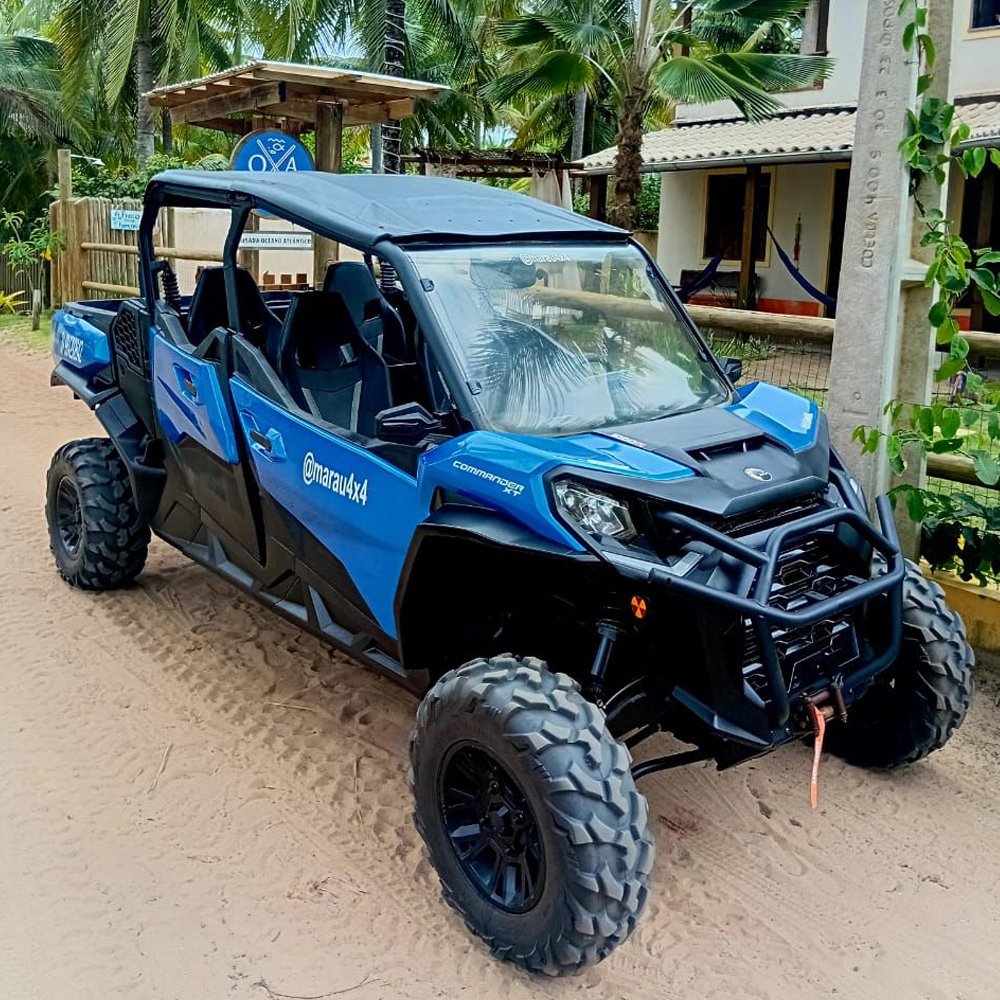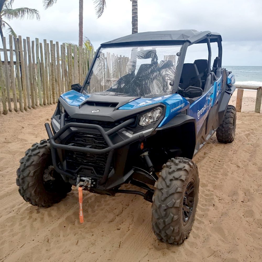 A UTV Can-Am Commander XT 1000R 4 LUGARES é perfeita para famílias com crianças e/ou idoso, ou ainda para duas duplas de amigos que desejem explorar a Península de Maraú com aventura, sem abrir mão do conforto.