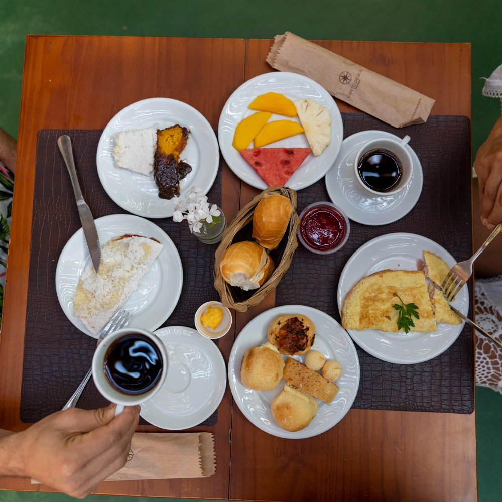 Oferecemos saborosas e inesquecíveis experiências em seu café da manhã aqui na Pousada Canto do Sol. Nossa alimentação é variada e de primeira qualidade com alimentos selecionados semanalmente com muito carinho.